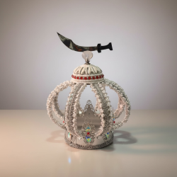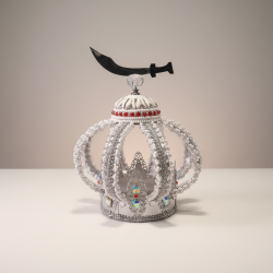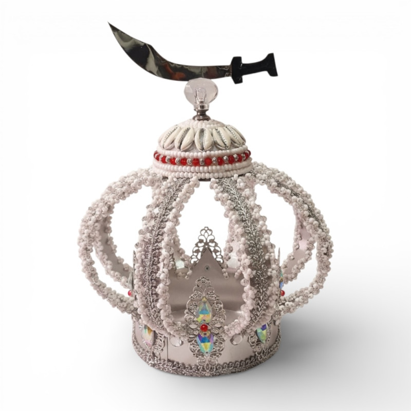 Corona decorada para Obatalá Ayaguna con cimitarra encima.