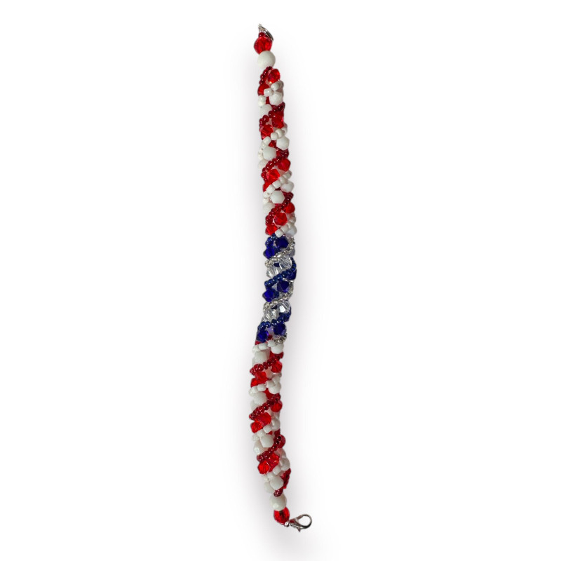 Idde trenzada de Shango con yemaya de cuentas. Medida: 17cm aprox de largo.