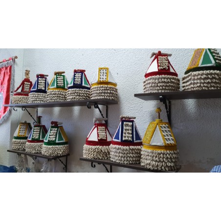 Inle fabricado en Nigeria con caracoles y cuentas de cristal.