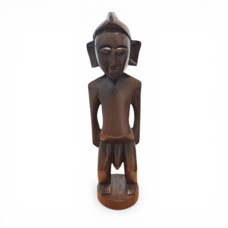 Figura tallada en madera con dos caras en madera de primera calidad.