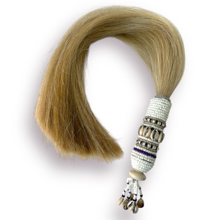 Forrado con cuentas de cristal preciosas de primera calidad y pelo de caballo original blanco.