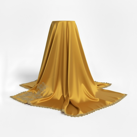 Pañuelo para trono de Oshún. Disponible el paño que aparece estirado.