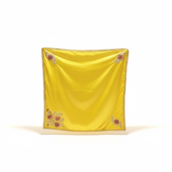 Precioso pañuelo con adornos para tronos de Oshun. Medidas 140cm x 140 cm. paño pañuelos