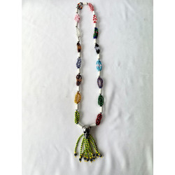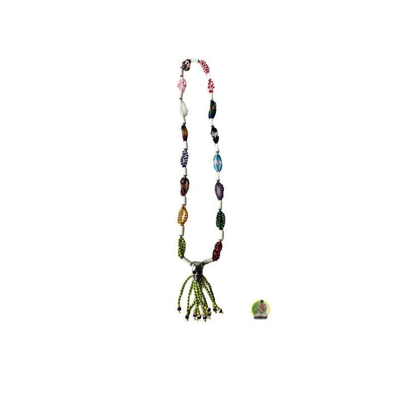 Collar de Ogbeyono de cuentas de cristal de 3mm con calavera metalica.