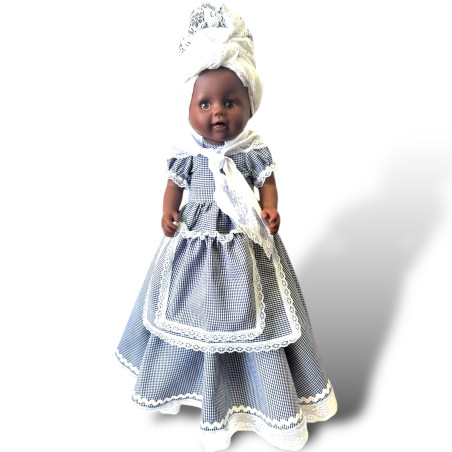 Muñeca para dos aguas, Yemayá y Oshún, con traje de guinga y adornos.