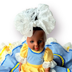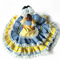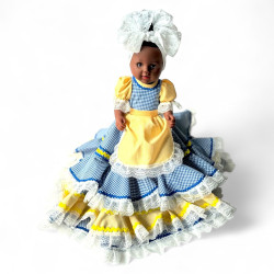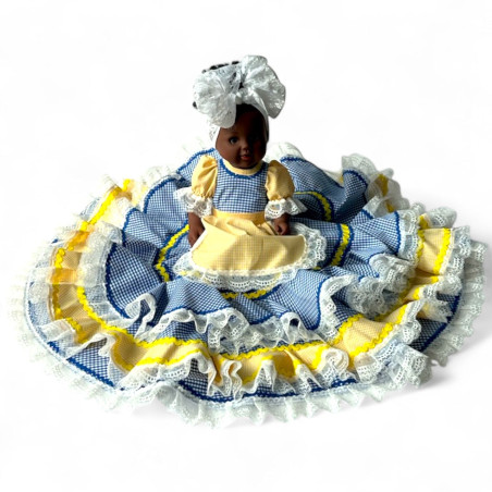 Muñeca para dos aguas, Yemayá y Oshún, con traje de guinga y adornos.