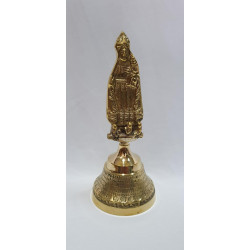 Campana para Oshún de latón con virgen caridad del cobre, en color oro con bonitos detalles.