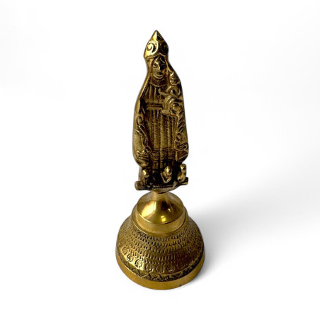 Campana para Oshún de latón labrada con Virgen Caridad del Cobre a relieve.