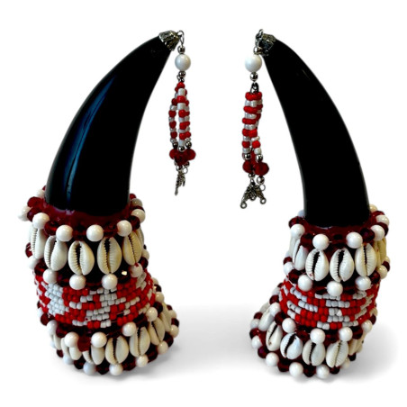 Pareja Cuernos Oggue decorados de Shango, con cuentas de primera calidad y con posibilidad de cargarlo