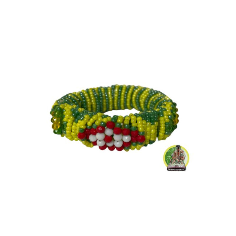 Pulsera Idde elástico de Shangó con cuenta de cristal para babalawo.