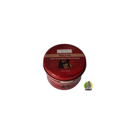 Vela Aromática con cuarzo Ven a mi. Vela con oración para atrer el amor