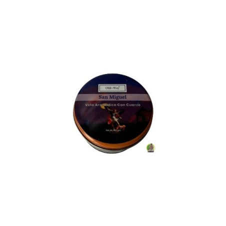 Vela Aromática con cuarzo San Miguel. Vela con oracion a San Miguel Arcangel.