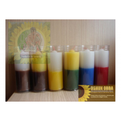 Velas redondas con funda de plástico, en diferentes colores: Amarillo-Verde, Azul-Blanco, Rojo-Negro, Rojo-Blanco.